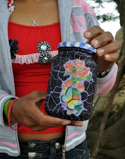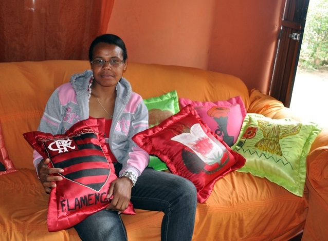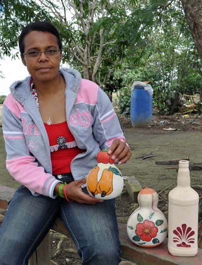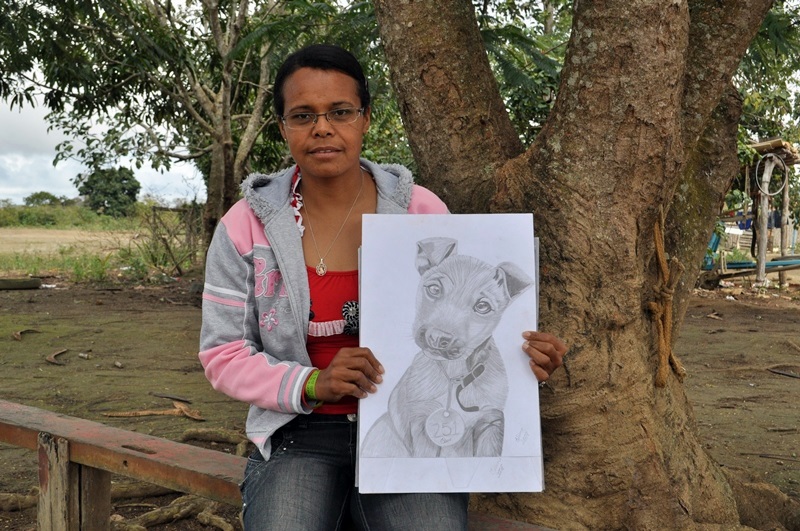 Arte - Aluna do curso de Pintor do Qualifica - o grupo do Assentamento do MST