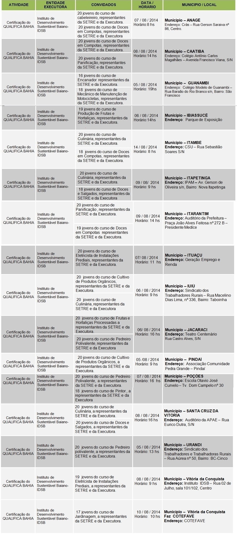 As viagens de entrega de certificados vão do dia 5 ao dia 10 de agosto. Por fim, no dia 14 de agosto, encerra-se todas as certificações, na cidade de Itambé.