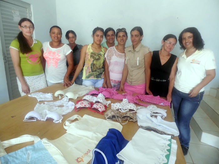 Com o apoio do Cesol o grupo só fez ganhar mais visibilidade, além de mais auto-estima. Vilmanete, que está à frente, conta que o grupo já teve oficinas de capacitações específicas com o Cesol - de serigrafia e curso de roupa íntima; oficina de preço, logomarca, padronização, design das peças e harmonização de estampas e cores. E não foi só isso, o Cesol também colaborou com questões de contabilidade de receitas e despesas e formalização do grupo, com CNPJ para comercializar de uma forma mais organizada. "Se não fosse o Cesol, não teríamos continuado a produzir. O grupo tem hoje muita vontade e coragem e muito disso é por conta da orientação e incentivo dos técnicos do Cesol. Até material o Cesol já nos cedeu para produzir, os cartões de visita que temos hoje, então só temos a agradecer", comenta.
