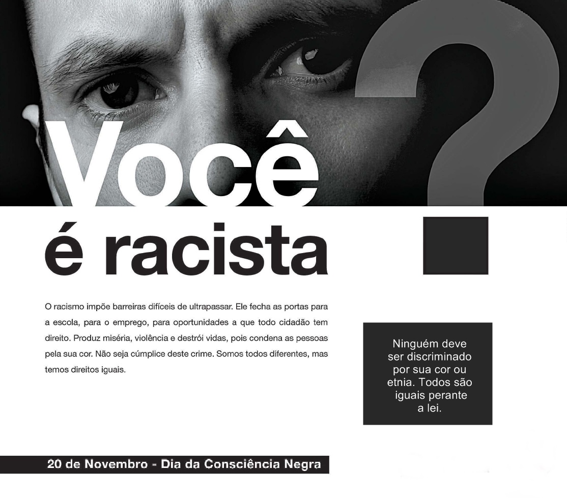 Porém, a miscigenação não exclui os preconceitos. Nossa última constituição coloca a discriminação racial como um crime inafiançável. Entre nossas discussões proferimos, ao mesmo tempo, horror ao racismo e admitimos publicamente que o Brasil é um país racista. Tal contradição indica que nosso racismo é velado e, nem por isso, pulsante. Queremos ter um discurso sobre o negro, mas não vemos a urgência de algum tipo de mobilização a favor da resolução desse problema.