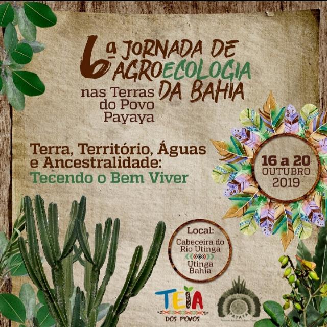 Neste ano, a VI Jornada de Agroecologia irá acontecer no período de 16 a 20 de outubro de 2019, nas Terras do Povo Payaya, em Utinga, na Chapada Diamantina, Bahia.