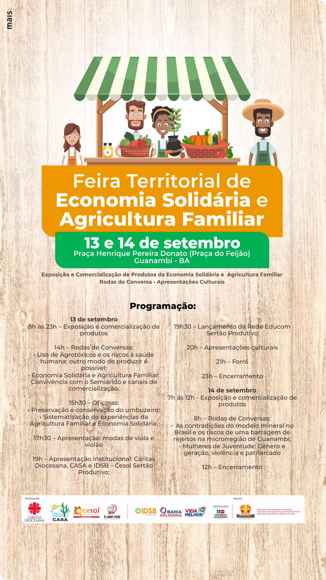 A próxima edição da Feira Territorial de Economia Solidária e Agricultura Familiar em Guanambi já tem data: 13 e 14 de Setembro!