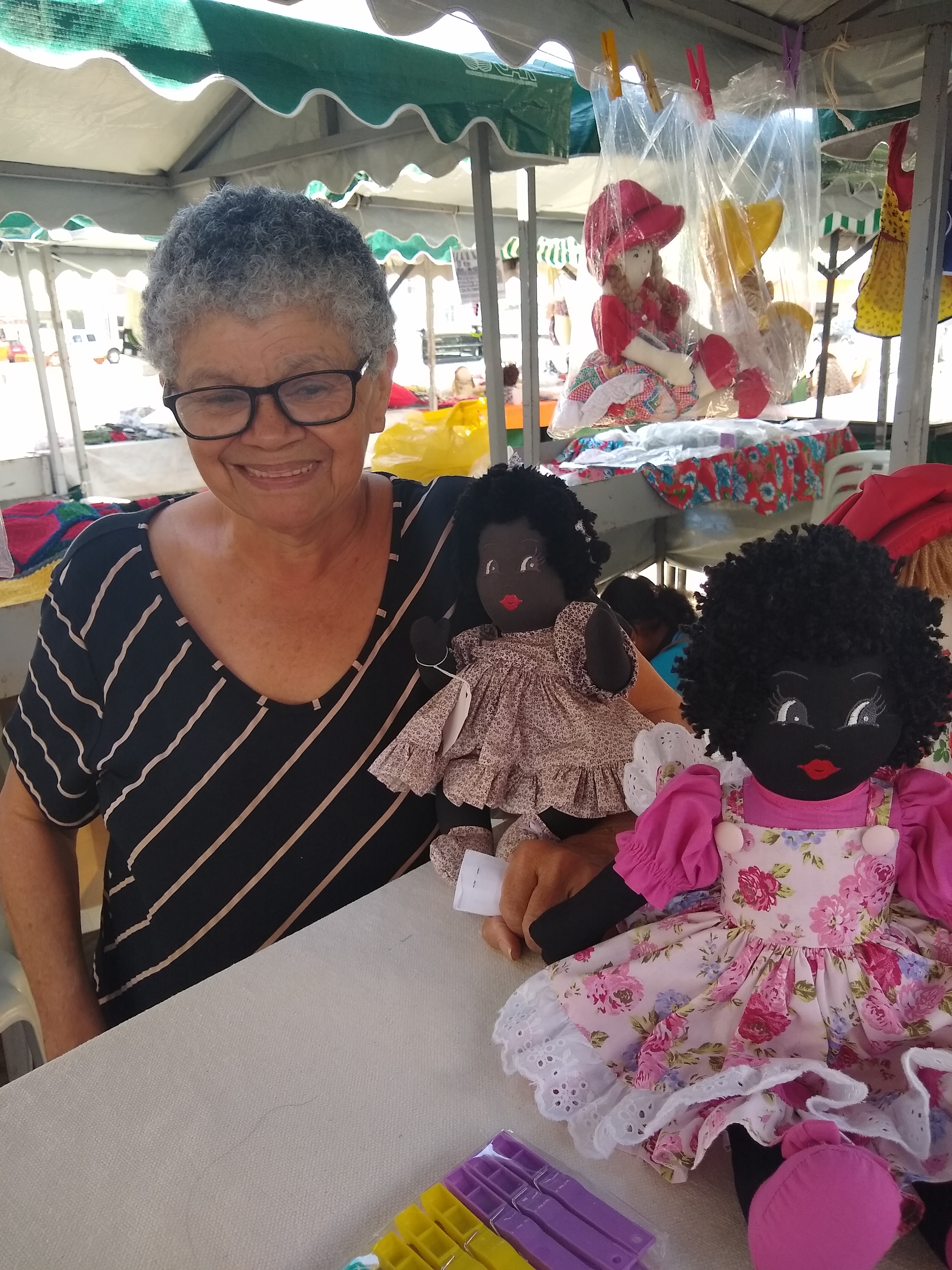 O carro - chefe do empreendimento é a boneca preta. A primeira, Dona Luzia fez em homenagem à avó. Sempre que participa de eventos e feiras, a boneca vai junto. Não falta cliente interessado, mas aquela “escondidinha”, exposta sempre no cantinho da barraca, não está a venda. Ela é como um troféu pra Dona Luzia, com um valor emocional infinito!