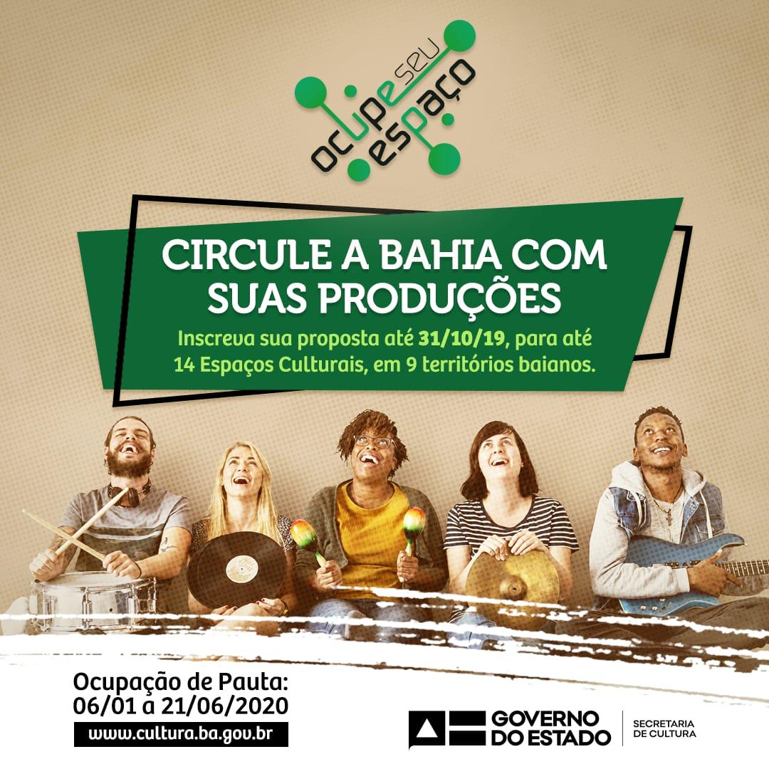 As inscrições para a 7ª chamada pública de ocupação de pautas artístico-culturais dos Espaços Culturais da SecultBA – Ocupe Seu Espaço – terminam no próximo dia 31 de Outubro de 2019.