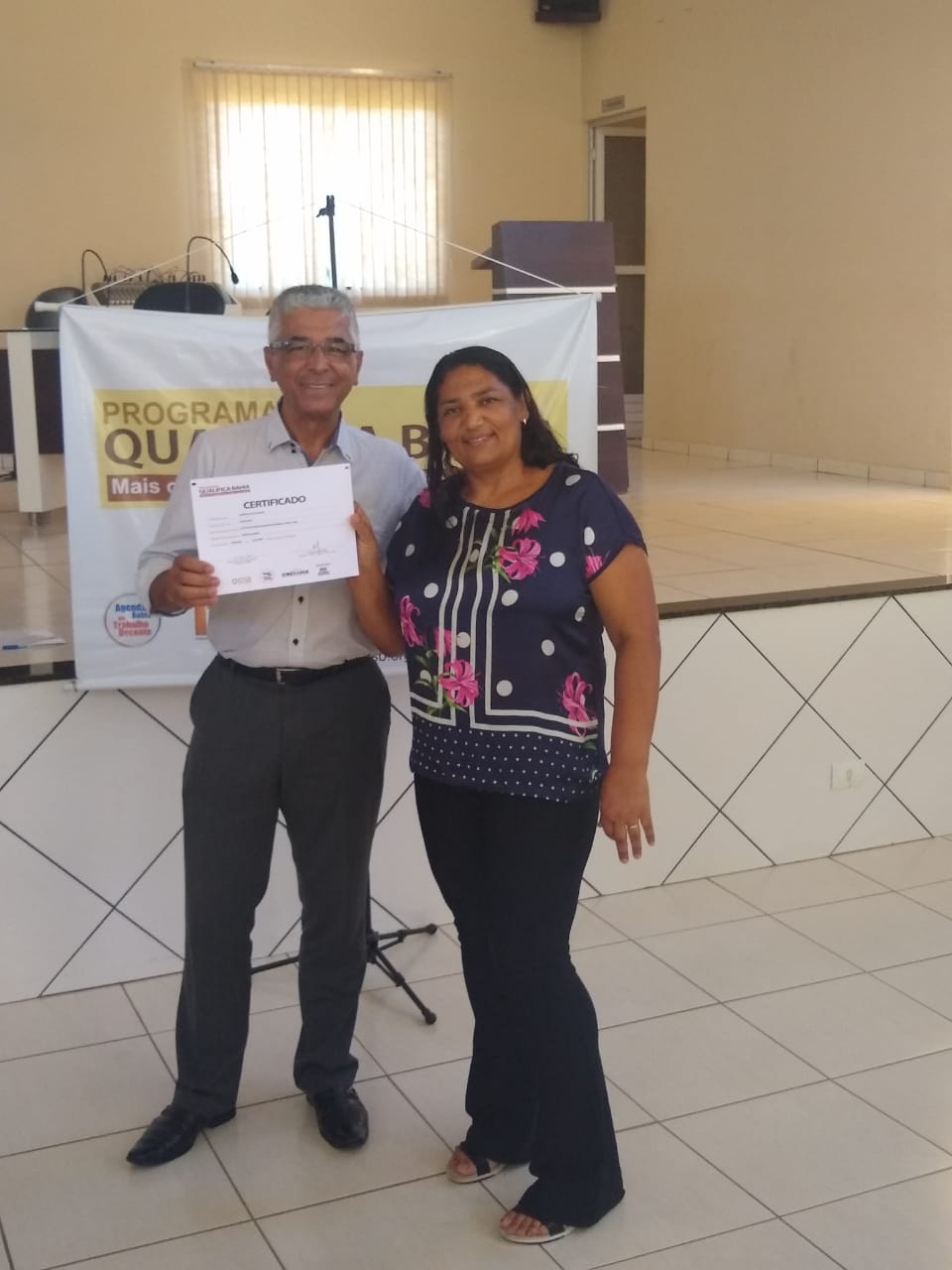 Pela manhã, a equipe foi ao município de Licínio de Almeida entregar os certificados aos alunos da turma de Marcenaria. Lúcia Jacinto é téc. em enfermagem e foi a primeira aluna inscrita no curso:
