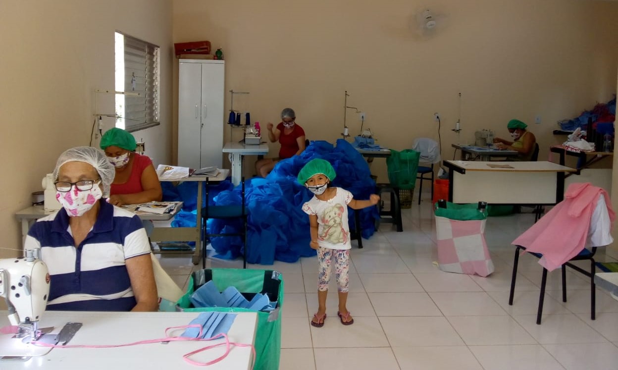 Costureiras do Mãos que Bordam produzindo máscaras, junho de 2020. Foto: arquivo pessoal.