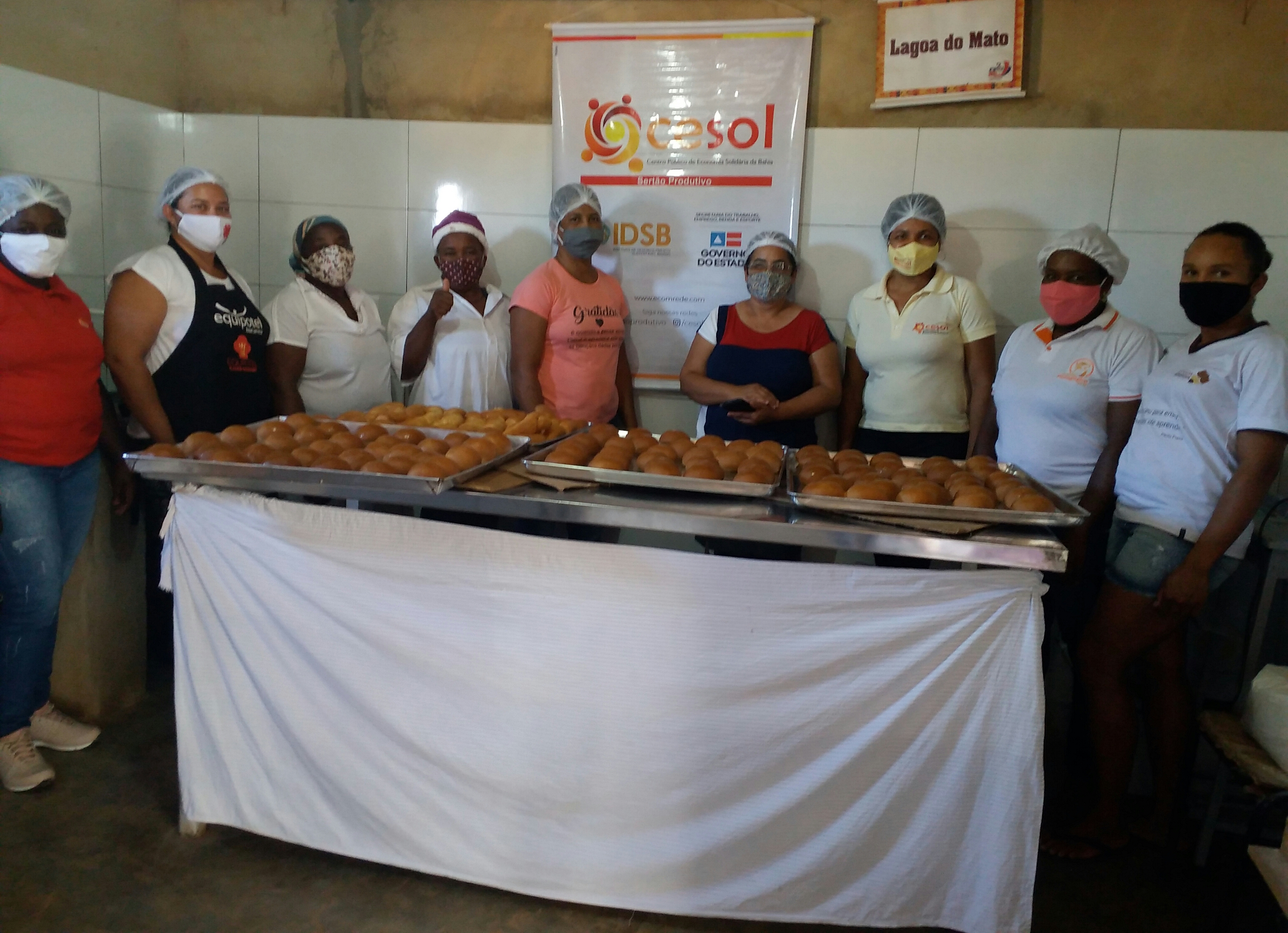 A tarde da última terça-feira (12) foi marcada pela cooperação do Empreendimento de Economia Solidária (EES) Império do Sabor, grupo formado por mulheres, localizado na Comunidade Quilombola Lagoa do Mato, no Município de Caetité. O Império do Sabor produz pães caseiros e bolos, comercializados diariamente na comunidade, onde há cerca de 90 famílias. Algumas das mulheres que fazem parte desse EES têm a produção dos pães como a principal fonte de renda.