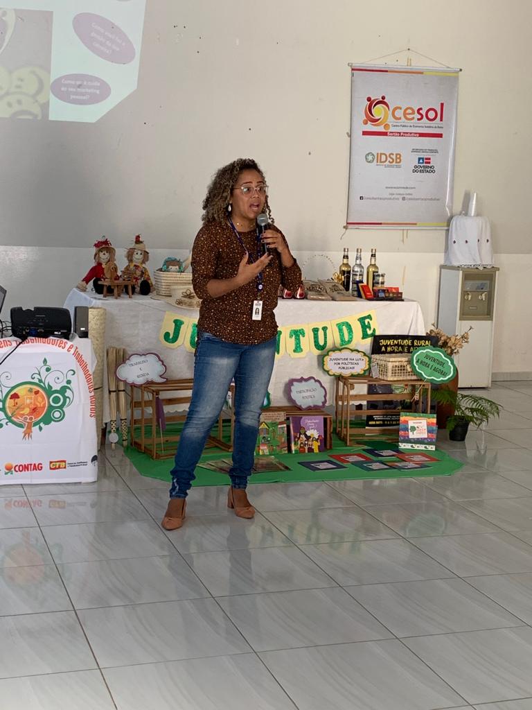 O evento teve o objetivo de sensibilizar jovens para construção do autoconhecimento, desenvolvimento de potencialidades e inserção no mercado de trabalho. As jovens Kaliane e Aline, participaram do evento compartilhando experiências. Kaliane integra o Empreendimento Harmonia Confecções e Aline é presidente da Associação Quilombola de Lagoa Grande.
