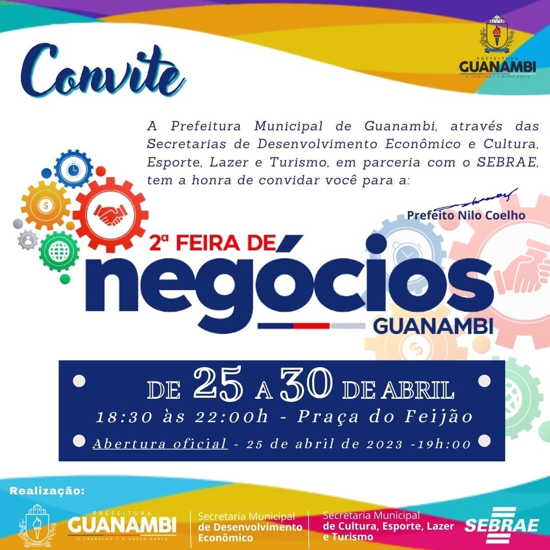 Na terça-feira (25) iniciou a 2ª Feira de Negócios, realizada pela Prefeitura de Guanambi, por meio da Secretaria Municipal de Desenvolvimento Econômico, e a Secretaria Municipal de Cultura, Esporte, Lazer e Turismo. Nesta edição, o evento conta com exposições, comercialização, divulgação de produtos/serviços do município e do Território Sertão Produtivo. Com muitas novidades e grande público presente, a noite de abertura do evento foi ainda abrilhantada com a apresentação musical do artista Evandro Correia.