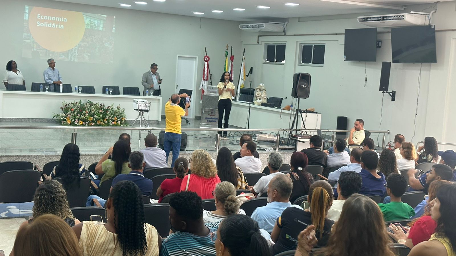 Representantes dos EEPS, instituições parceiras e entusiastas da Economia Solidária estiveram presentes na sessão solene. O evento contou ainda com as presenças de Wenceslau Júnior da Superintendência de Economia Solidária e Cooperativismo da Secretaria do Trabalho, Emprego, Renda e Esporte (Setre), Efeson Lima, Coordenação da de Assistência Técnica e Inclusão Sócio Produtiva da Setre, entre outros representantes das políticas públicas de Economia Solidária da Bahia.