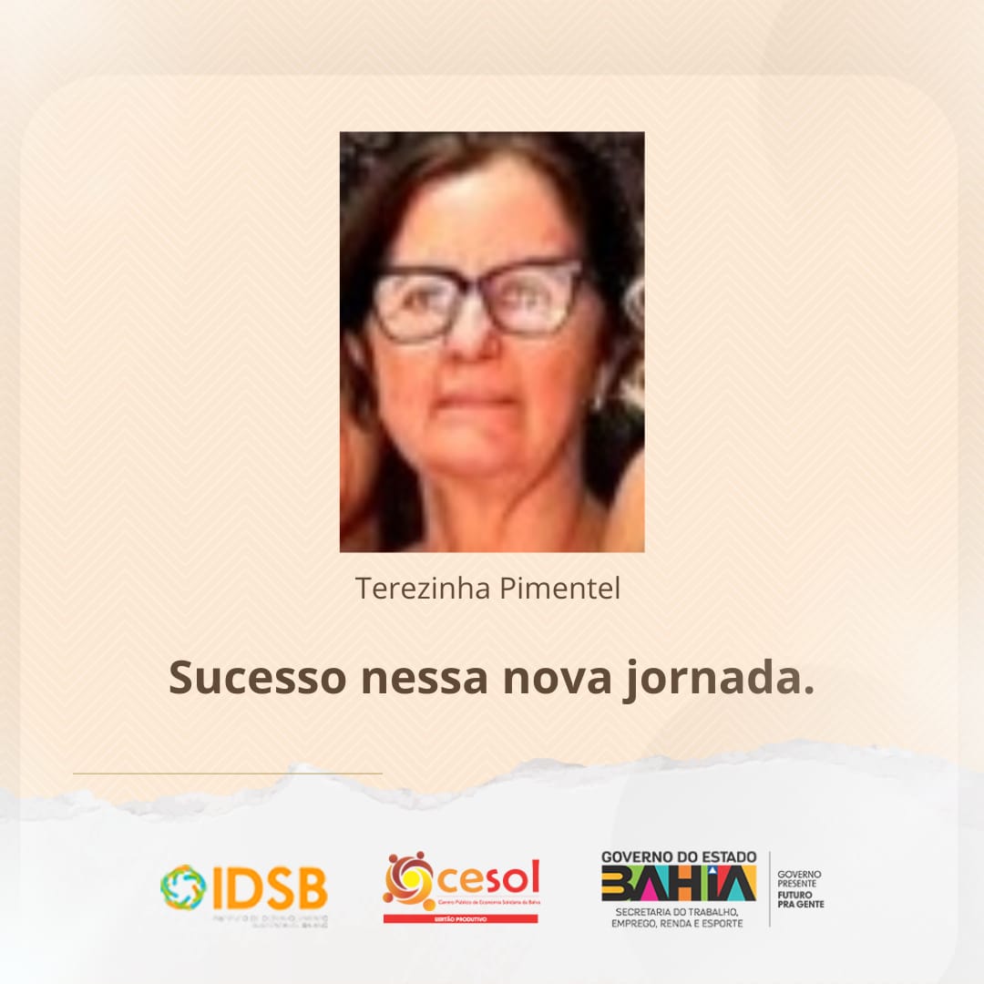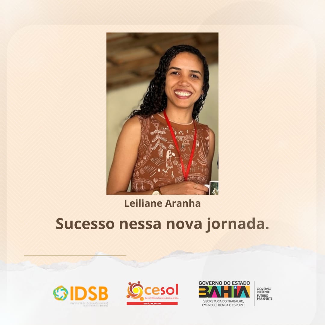 Após 10 anos de dedicação e compromisso extraordinário, nossa Coordenadora Geral Leiliane Azevedo Aranha, nomeada para compor o secretariado do município de Urandi, está deixando nossa organização. Durante sua jornada conosco, Leiliane liderou com todo zelo, responsabilidade, excelência, e esmerada competência, que tornou-se uma referência na gestão da política pública de economia solidária, não apenas no território, mas em toda a Bahia. Desejamos sucesso infinito a nova secretária em sua nova jornada. Confiamos de que a Ecosol, tem uma potente aliada para expansão dos seus negócios no município de Urandi e em todo o no Território Sertão Produtivo. Também quem deixará de atuar como Coordenadora de Articulação no território, é Terezinha Pimentel, a quem somos gratos por sua dedicação na representação do Cesol no TerritórioSertão Produtivo, desempenhado de forma ímpar um excelente trabalho na ampliação e consolidação da política pública de economia solidária como instrumento de independência e qualidade de vida das pessoas.